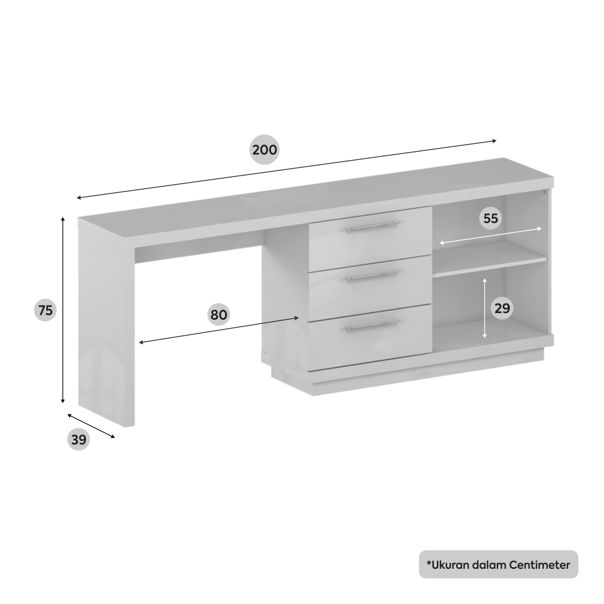 • Media kerja yang sangat luas dan nyaman untuk kebutuhan kerja yang lebih kompleks • Laci untuk menyimpan file yang luas • Lubang kabel lebih mudah dalam mengatur kabel anda • Cocok untuk melengkapi ruang kerja di rumah maupun kantor • Clean, minimalist design • Tinggi top table nyaman sesuai anthropometri orang kerja • Meja yang sudah disesuaikan dengan posisi siku-siku lengan yang sejajar atau lebih rendah untuk mengurangi ketegangan otot Detail Produk