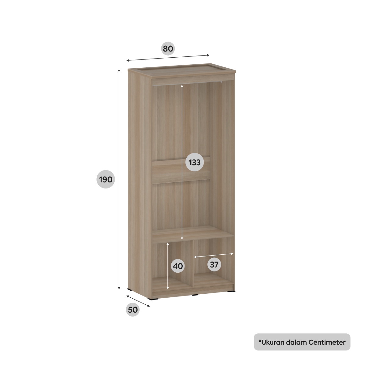 • Kayu : Kombinasi Particle Board + MDF • Laminasi : Paper Lamination